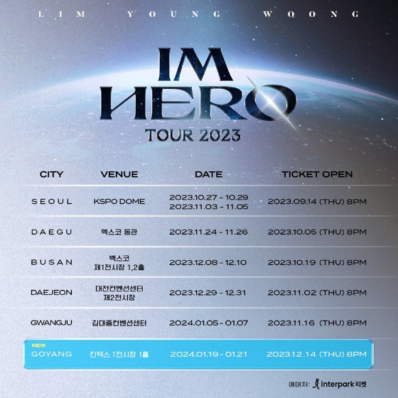 가수 임영웅의 전국투어 콘서트 'IM HERO'가 추가됐다.