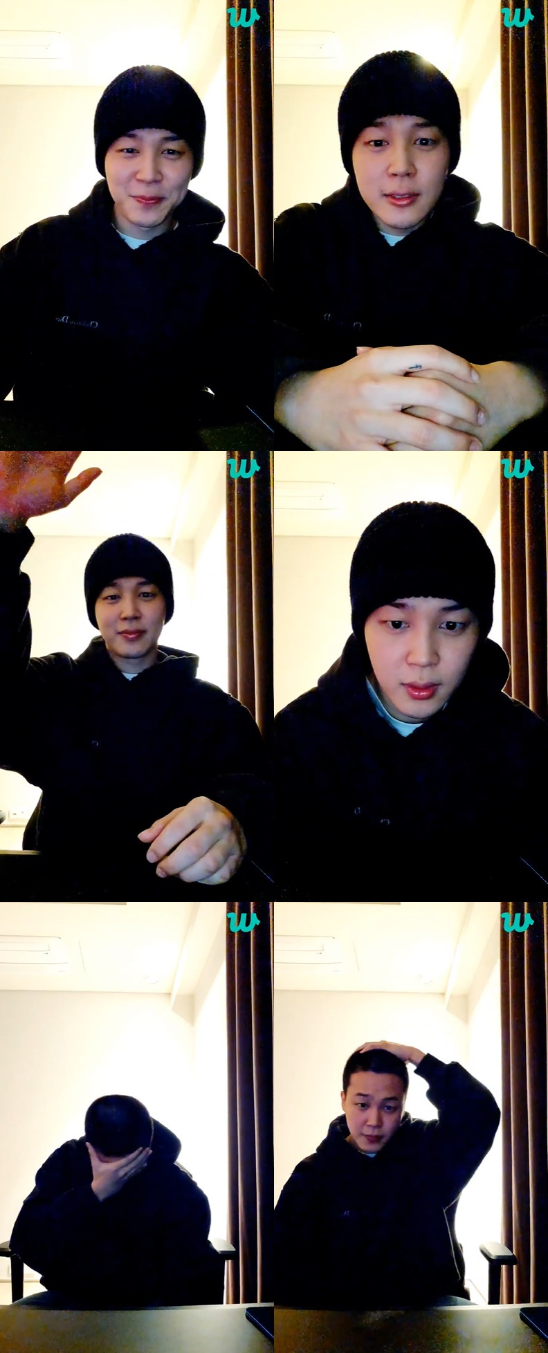 지민은 "오늘 태형이하고 남준이형 입대하는 모습 보고 왔고, 두 분은 웃으면서 씩씩하게 잘 들어갔다. 건강하게 잘 하고 오겠다고 하고 들어갔다"라며 이날 입대한 RM과 뷔의 모습도 대신 전했다.