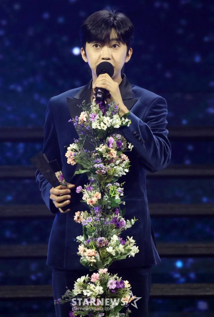 딘딘은 "이렇게 AAA에 와서 좋은 상을 받게 해 주신 소속사 관계자, 스태프들에게 감사하다. 리허설하면서 몇 날 며칠 고생하셨던 AAA 관계자들에게도 감사하다. 또 우리 팬, 가족들에게도 감사하다"고 밝혔다.