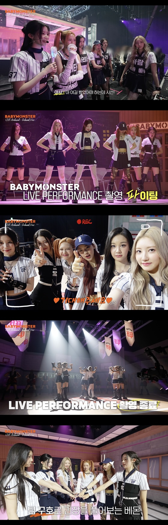 소속사 YG엔터테인먼트는 지난 17일 오후 공식 블로그에 'BABYMONSTER - 'BATTER UP' LIVE PERFORMANCE (School Ver.) BEHIND'를 게재했다. 이는 'BATTER UP' 라이브 퍼포먼스 비디오 촬영 현장이 생생히 담긴 영상이다.