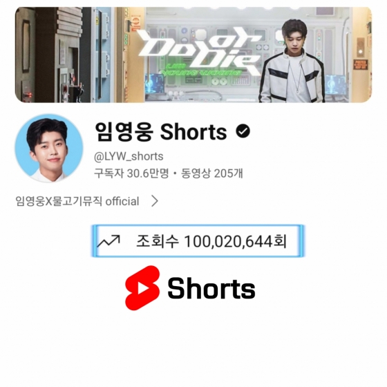 임영웅 Shorts가 총조회수 1억뷰 대기록을 달성했다.