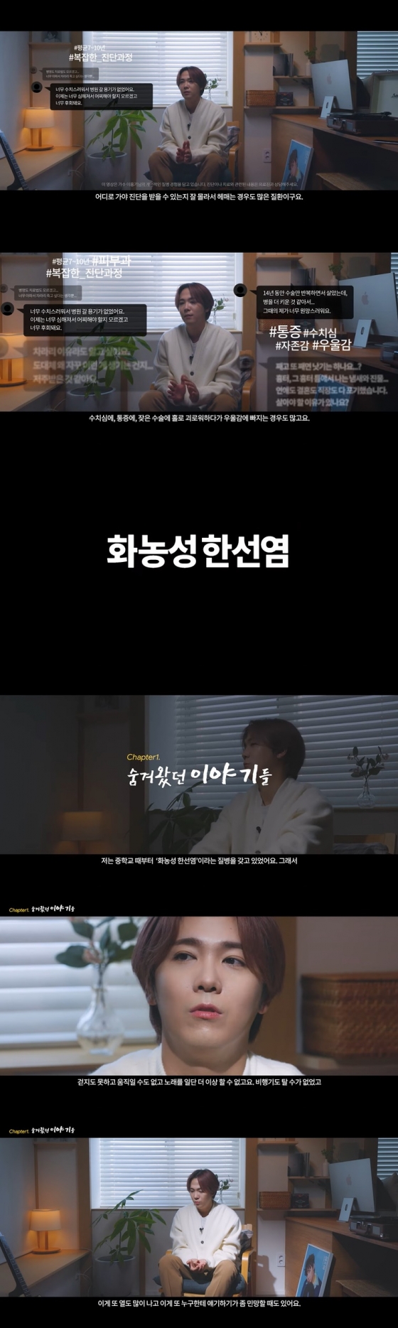 이홍기는 "지금은 '화농성 한선염'이라는 정확한 질병명이 있지만 제가 어렸을 때만 해도 제가 이 질병에 대해서 고통받고 있거나 하면 주변에서 '종기야'라고 했었고, 이 '종기'라는 단어를 많은 분들이 안 씻어서 생기는 줄 알더라. 수치스럽고 창피하기도 하고 그래서 말을 못 했던 것 같다"라고 털어놨다.