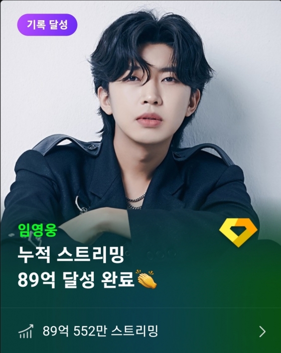 가수 임영웅이 멜론(Melon) 누적 스트리밍 89억을 달성했다.