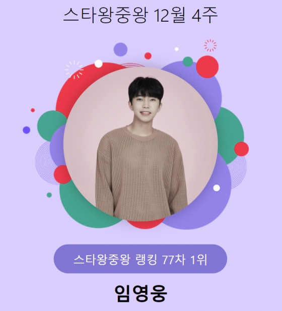 임영웅은 12월 22일 오후 3시 1분부터 12월 29일 오후 3시까지 진행된 12월 4주차(77차) 스타랭킹 스타왕중왕 랭킹 투표에서 13만 8463표를 얻고 1위를 차지했다.