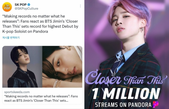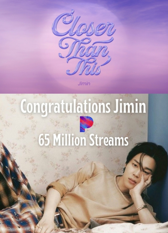 지난 12월 22일 발매된 지민의 디지털 싱글 '클로저 댄 디스(Closer Than This)'가 미국 음악 서비스 플랫폼 판도라(Pandora)에서 발매 5일 만에 100만 스트리밍을 돌파했다.