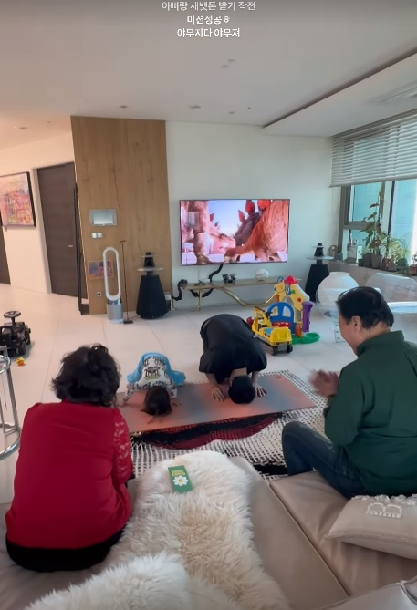 영상에는 김민준과 아들 이든이가 지드래곤, 권다미의 부모님에게 절을 한 후 세뱃돈을 받는 모습이 담겨 있었다.