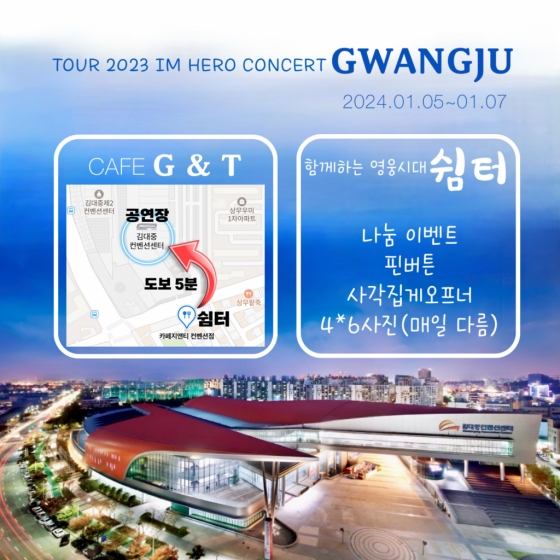 임영웅 팬클럽 영웅시대는 1월 5일~7일 임영웅 광주 콘서트를 맞아 공연장인 김대중컨벤션센터 인근에 '함께하는 영웅시대 쉼터'를 마련했다.