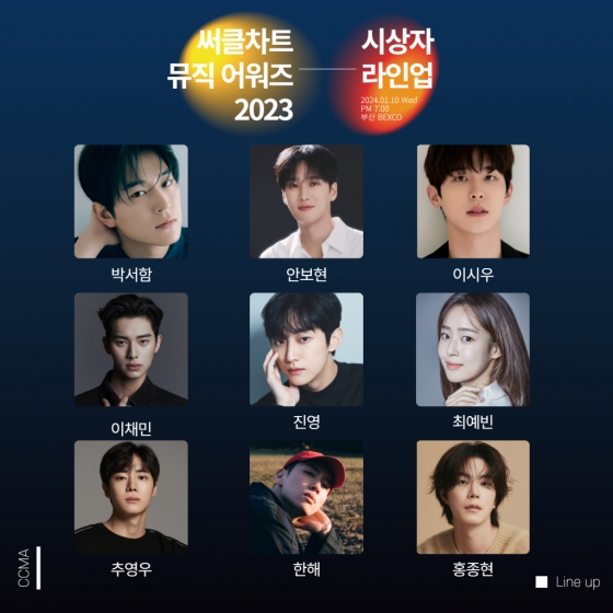 써클차트 뮤직 어워즈 사무국은 "박서함, 안보현, 이시우, 이채민, 진영, 최예빈, 추영우, 한해, 홍종현(*가나다순)이 CCMA 2023에 시상자로 참석한다"고 3일 발표했다.