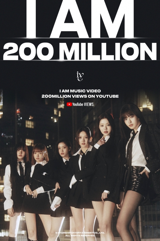 그룹 아이브(IVE, 안유진·가을·레이·장원영·리즈·이서)의 '아이엠(I AM)' 뮤직비디오가 조회 수 2억 뷰를 돌파했다.