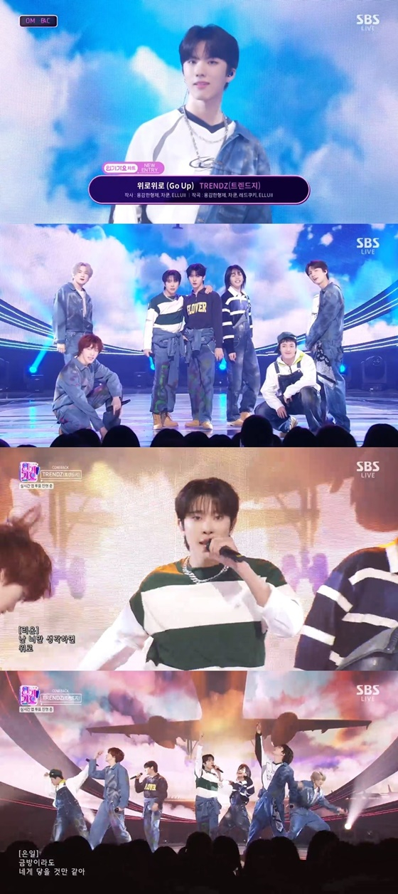 이날 신곡 '위로위로'(Go Up)로 무대를 꾸민 트렌드지는 자유분방한 청춘의 감성을 보여주는 동시에 깊어진 표현력과 매력으로 시선을 끌었다. 파워풀하면서 달콤한 보컬로 귀를 호강시킨 트렌드지는 강렬한 래핑까지 선사했다.