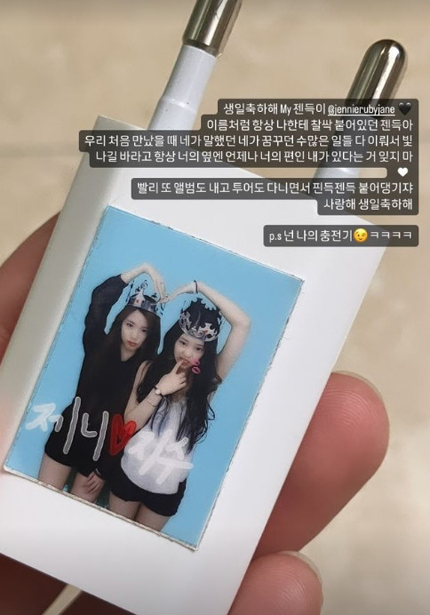 또한 "빨리 또 앨범도 내고 투어도 다니면서 찐득젠득 붙어 당기자. 사랑해 생일 축하해. 넌 나의 충전기"라고 덧붙였다.