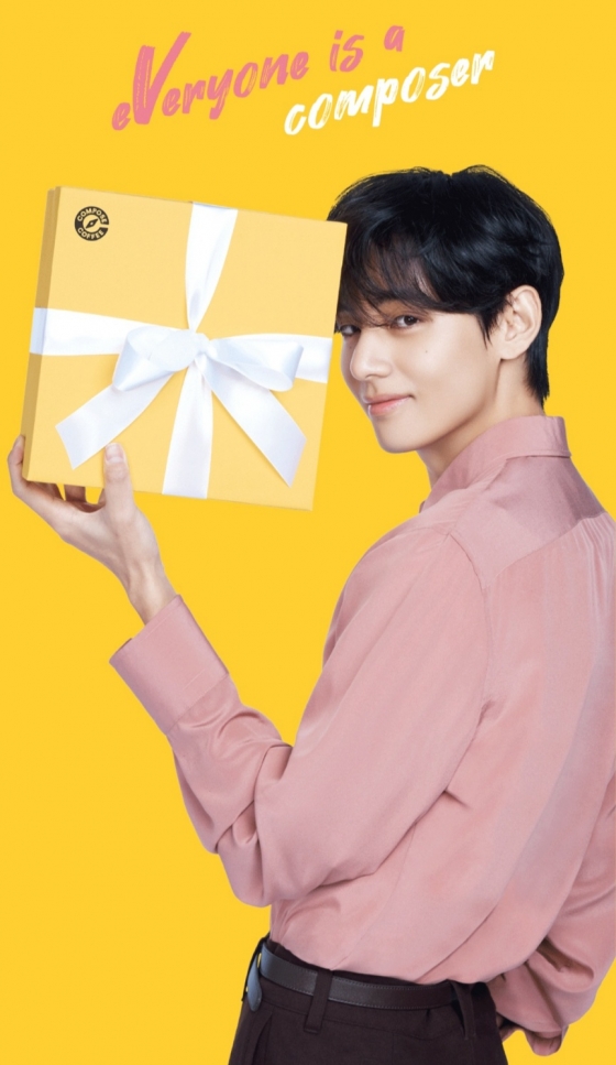 뷔는 홍보모델로 활동하고 있는 커피 브랜드 컴포즈가 1월 16일 공개한 광고 영상에서 커피향 나는 분위기 있는 바리스타와 베토벤을 연상시키는 헤어스타일을 한 작곡가로 변신, 1인 2역을 능수능란하게 소화하며 색다른 재미를 선사했다.