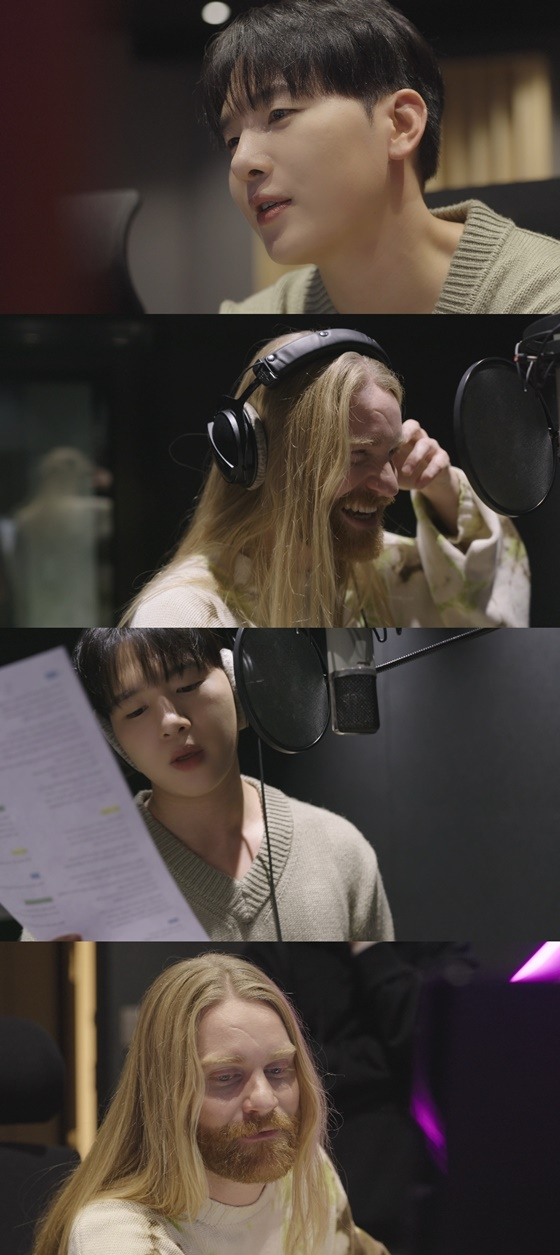 그룹 멜로망스 김민석과 영국 싱어송라이터 샘 라이더가 화기애애한 녹음 현장을 공개했다.