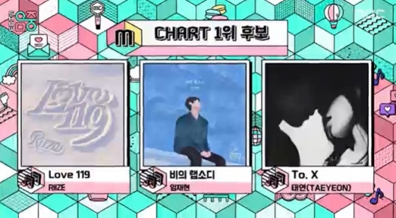 라이즈는 'Love 119', 임재현은 '비의 랩소디', 태연은 'To. X'로 '음중' 1위 후보에 이름을 올렸다.