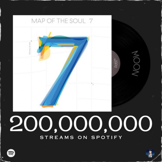 방탄소년단(BTS) 진의 자작 솔로곡 '문'(Moon)이 스포티파이(Spotify)에서 2억 스트리밍을 달성하며 인기를 빛냈다.