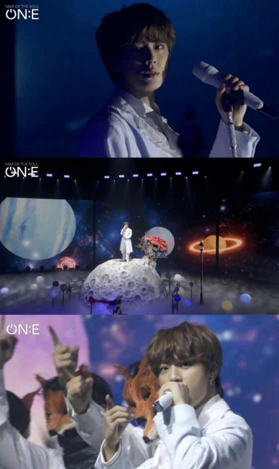 진은 방탄소년단 온라인 콘서트 'MAP OF THE SOUL ON:E' 첫날 공연에서 어린 왕자로 변신, 달과 지구, 장미와 여우, 여러 행성으로 꾸며진 동화같이 아름다운 무대에서 솔로곡 'Moon' 무대를 선보여 음원을 능가하는 라이브 실력으로 팬들의 감탄을 자아냈다.
