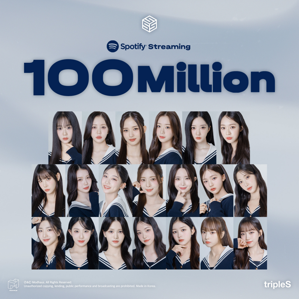걸그룹 트리플에스(tripleS)가 스포티파이 누적 1억 스트리밍을 돌파했다.