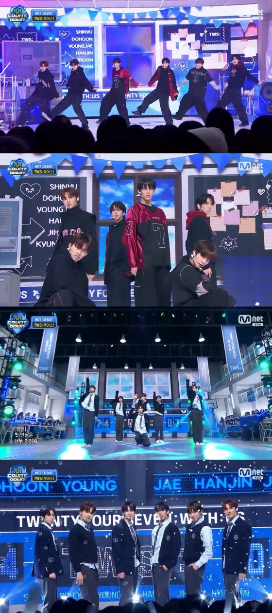 투어스는 지난 25일 Mnet '엠카운트다운'에 출연해 미니 1집 'Sparkling Blue'의 타이틀곡 '첫 만남은 계획대로 되지 않아'와 수록곡 'Oh Mymy : 7s (오마마)' 무대를 선보였다. 투어스의 풋풋한 면모를 비롯해 청량하고 파워풀한 퍼포먼스가 돋보인 순간이었다.