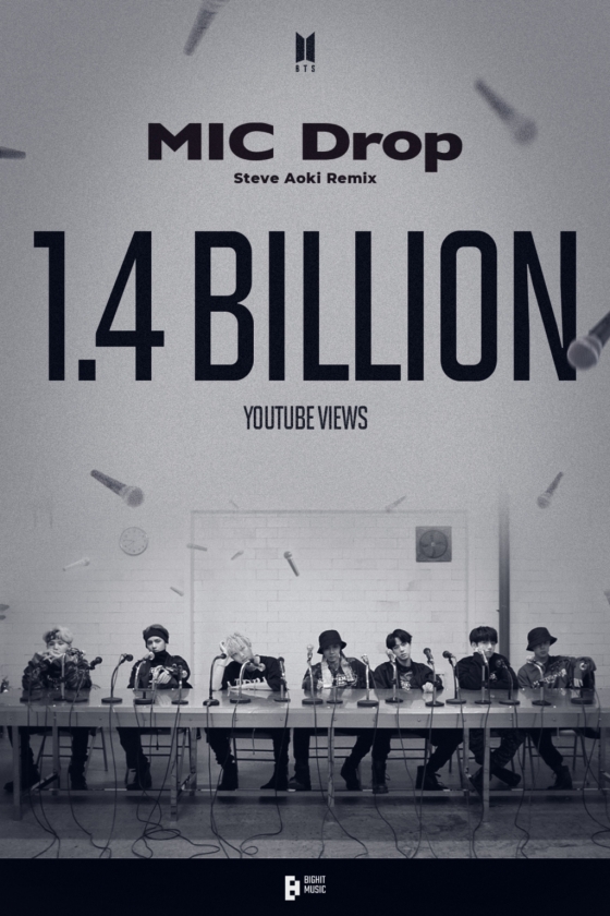 지난 2017년 11월 24일 하이브 레이블즈 공식 유튜브 채널에 공개된 방탄소년단의 'MIC Drop (Steve Aoki Remix)' 뮤직비디오 조회수가 26일 오전 12시 56분경 14억 건을 넘었다. 방탄소년단 통산 4번째 14억뷰 뮤직비디오다.