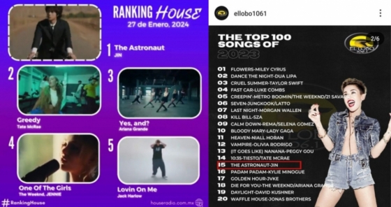 진의 '디 애스트로넛'은 최근 멕시코 '하우스 라디오(House Radio)'에서 진행한 'Rankig House TOP30' 차트에서 총 17번째 1위를 달성했다.