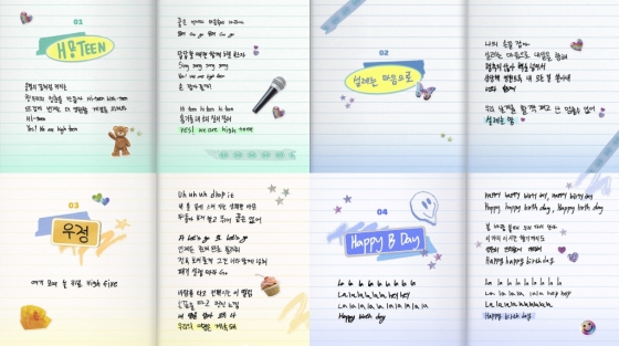 에너제틱한 'H! TEEN'에 이어 '설레는 마음으로'는 서정적이고 벅차오르는 클래시컬한 피아노 사운드가 인상적이다. 이어 학창 시절 우정과 패기를 연상시키는 '우정', 파워풀한 떼창으로 일상에 행복을 더하는 'Happy B Day'가 4곡 4색 매력을 품고 있다.
