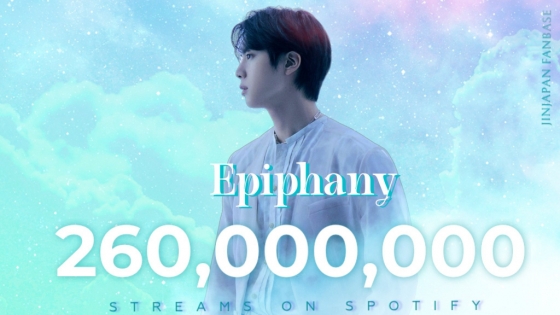 진의 '에피파니'는 최근 세계 최대 음원 플랫폼 스포티파이에서 2억 6000만 스트리밍을 돌파하며 오랫동안 사랑받는 명곡임을 입증하고 있다.