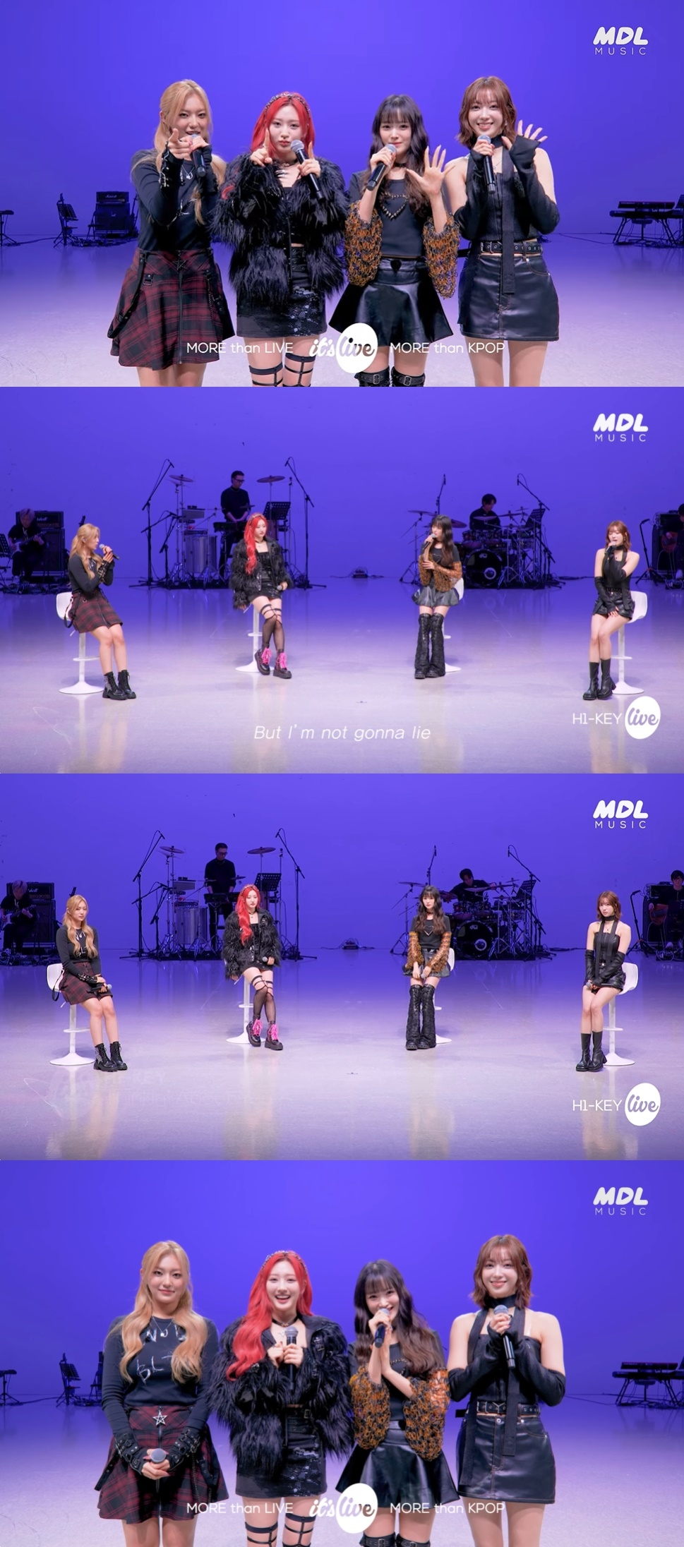 하이키(H1-KEY, 서이·리이나·휘서·옐)는 지난 8일 '잇츠라이브(it's Live)' 공식 유튜브 채널을 통해 밴드 라이브 버전으로 꾸며진 신곡 'Thinkin' About You(띵킨 어바웃 유)' 무대를 선보였다.
