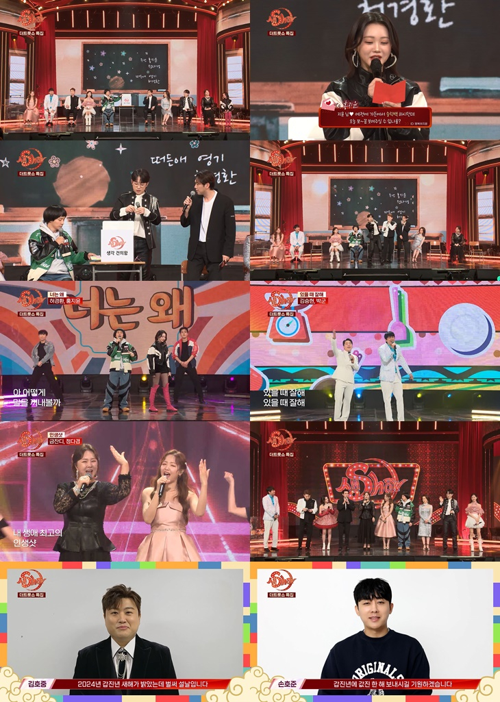 금잔디, 문희경, 김승현, 허경환, 김선근 아나운서, 영기, 안성훈, 정다경, 홍지윤, 강예슬 등이 참여해 자신들의 히트곡을 선사했다. 특히 허경환-영기-김선근 아나운서는 무한궤도의 '그대에게', 문희경-정다경은 '하늬바람', 허경환-홍지윤은 철이와 미애의 '너는 왜', 김승현-박군은 '있을 때 잘해', 금잔디-정다경은 '인생샷' 등 다양한 컬래버레이션 무대로 풍성한 볼거리와 다양한 즐거움으로 설날 분위기를 느낄 수 있는 공연을 만들었다.