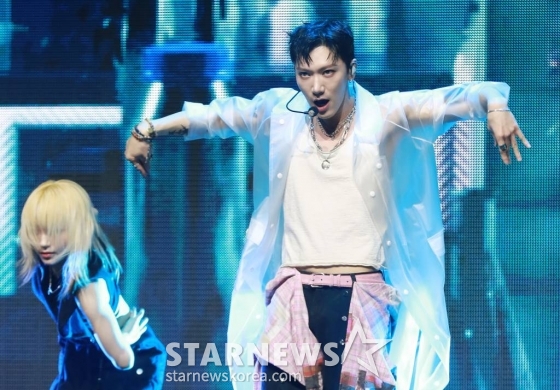 그룹 NCT 텐이 13일 오후 서울 광진구 예스24라이브홀에서 진행된 첫 솔로 미니앨범 '텐'(TEN) 발매기념 쇼케이스에서 신곡을 선보이고 있다. 이번 앨범은 타이틀곡 '나이트워커'를 포함해 다채로운 분위기의 영어곡 총 6곡으로 구성됐다. /2024.02.13 /사진=이동훈