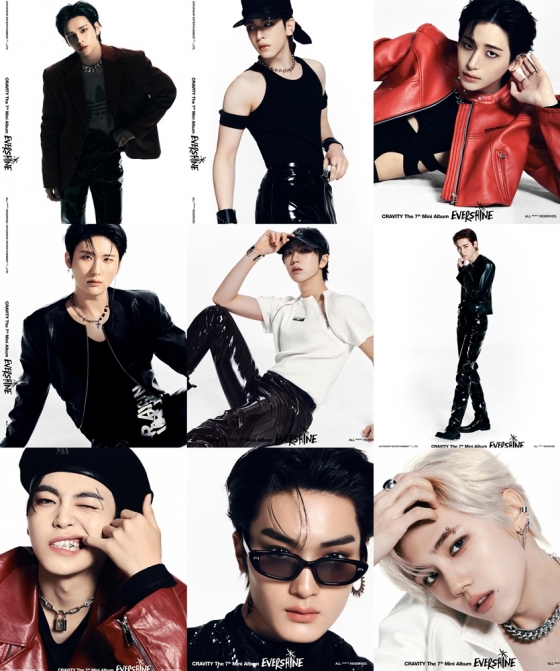 소속사 스타쉽엔터테인먼트는 지난 11일과 12일 공식 SNS를 통해 크래비티(세림, 앨런, 정모, 우빈, 원진, 민희, 형준, 태영, 성민)의 일곱 번째 미니 앨범 '에버샤인(EVERSHINE)' 두 번째 콘셉트 포토를 공개했다.
