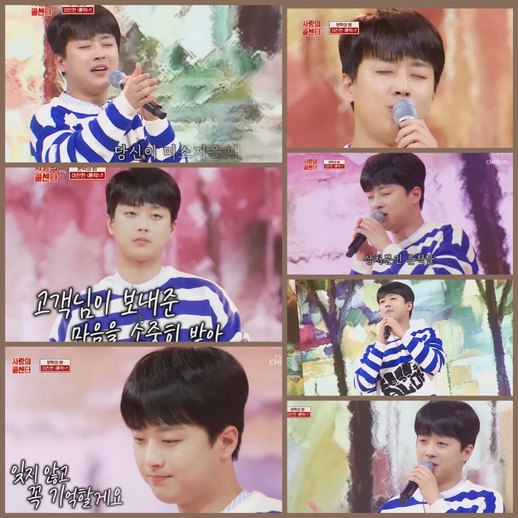 영상에는 이찬원이 TV 조선 '사랑의 콜센타'에서 선보인 '흔적' 무대가 담겼다.