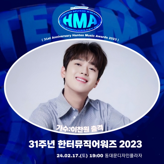 이찬원은 2월 17일 오후 7시 서울 동대문 디자인 플라자에서 열리는 '31주년 한터뮤직어워즈 2023'에 참석해 자리를 빛낸다.