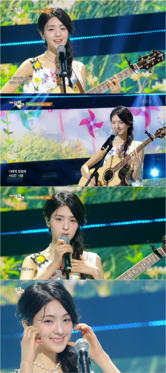 검정 속치마를 레이어드로 포인트를 준 귀여운 원피스 스타일링으로 무대에 오른 규빈은 10대 소녀만이 보여줄 수 있는 청춘의 감성으로 뮤직뱅크 무대를 물들였고, 달콤한 음색과 깔끔한 라이브 그리고 설렘을 유발하는 다채로운 표정 연기로 국내외 팬들의 마음을 훔쳤다.