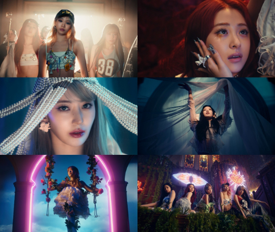 그룹 르세라핌(LE SSERAFIM. 김채원, 사쿠라, 허윤진, 카즈하, 홍은채)이 특유의 세련되고 힙한 감성을 극대화한 신곡 뮤직비디오를 공개했다.