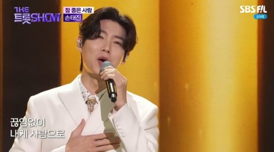 손태진은 지난 19일 방송된 SBS FiL, SBS M 음악 프로그램 '더트롯쇼'에서 2회 연속 1위 트로피를 거머쥐었다.