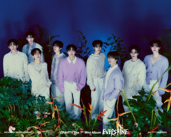 크래비티(세림, 앨런, 정모, 우빈, 원진, 민희, 형준, 태영, 성민)는 26일 오후 6시 각종 온라인 음원 사이트를 통해 일곱 번째 미니 앨범 '에버샤인(EVERSHINE)'을 발매했다. 지난해 9월 미니 6집 '선 시커(SUN SEEKER)' 이후 약 5개월 만에 컴백이다.