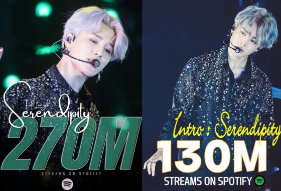 2018년 발매한 방탄소년단 앨범 '러브 유어셀프 결 앤서'(LOVE YOURSELF 結 Answer) 수록곡이자 지민의 솔로곡 '세렌디피티' 풀 버전은 2월 22일 스포티파이에서 2억 7000만 스트리밍을 돌파했다.