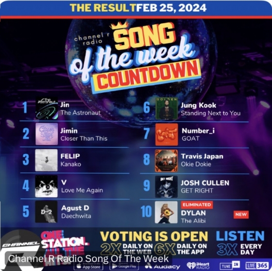 진의 첫 솔로 싱글 '디 애스트로넛'은 미국 '채널 R 라디오(Channel R Radio)'에서 2월 18일(현지 시간)과 2월 25일, 2주 연속 'Song of the Week'(금주의 노래) 1위를 차지했다. 진의 '디 애스트로넛'은 1위에 오르며 해당 라디오 채널에서 매일 3회 방송되고 있다.