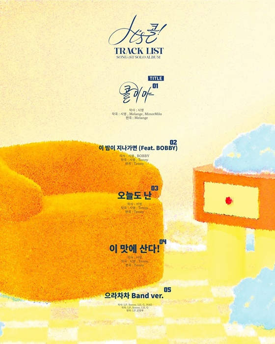 공개된 이미지에 따르면 이번 앨범에는 타이틀곡 '콜이야'를 포함 총 5개의 곡이 담긴다. 특히 송윤형의 솔로를 고대하던 아이코닉(iKONIC, 팬덤명)은 두 번째 트랙 '이 밤이 지나가면 (Feat. BOBBY)'에서 멤버 바비(BOBBY)가 참여하기도 했다.