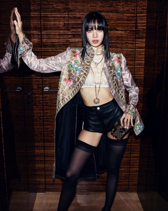 사진 속 리사는 아이보리 컬러의 실크 홀터넥, 블랙 핫팬츠에 시스루 스타킹을 매치하면서 남다른 각선미를 뽐내고 있다. 특유의 몽환적인 표정은 물론, 화려한 액세서리로 포인트를 주면서 글로벌 팬심을 저격했다.