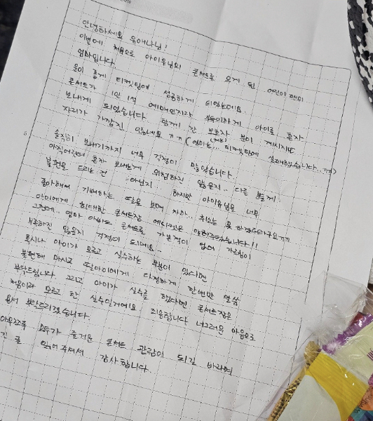 A씨는 "콘서트를 많이 다녔는데 이런 건 처음 받아본다"며 "정말 감동받았다"고 훈훈한 미담을 전했다.