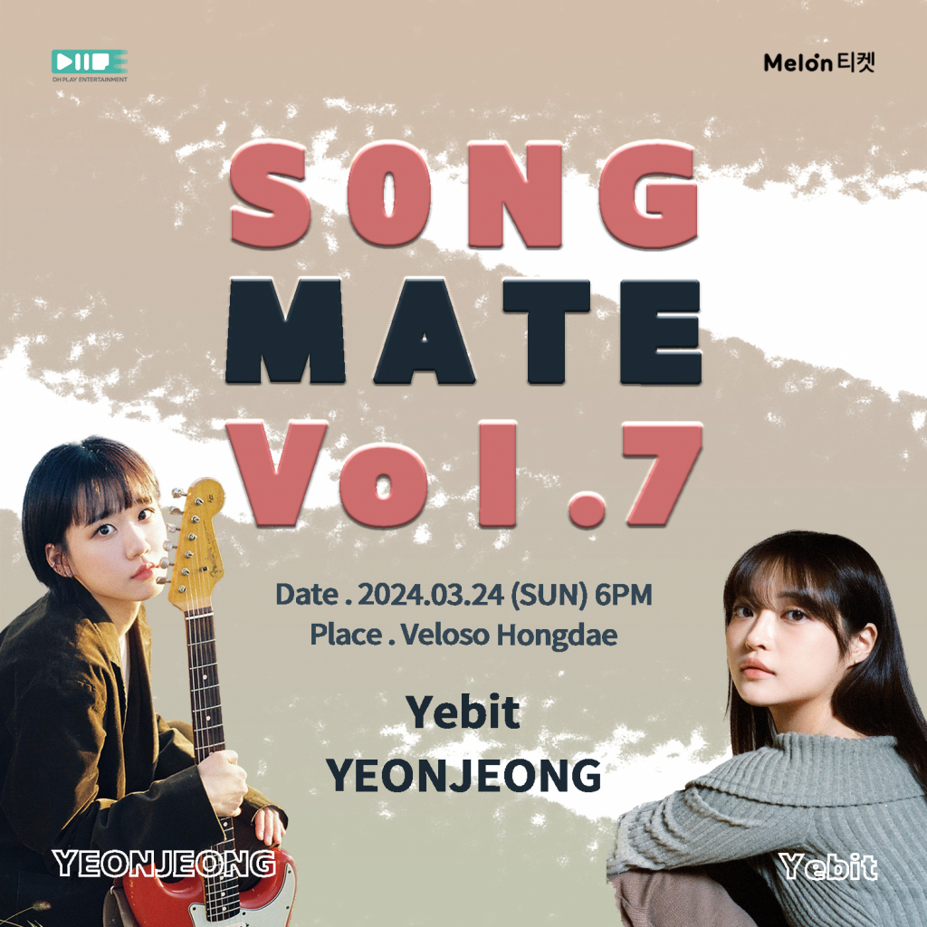 싱어송라이터 기획공연 시리즈 송메이트(SONGMATE) Vol.7에 '예빛'과 '연정(YEONJEONG)'이 출연한다.