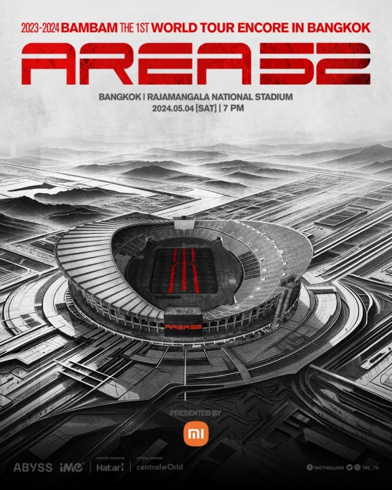 뱀뱀은 지난 12일 공식 SNS 채널을 통해 '뱀뱀 더 퍼스트 월드 투어 앙코르 '에어리어 52' 인 방콕'(2023-2024 BamBam THE 1ST WORLD TOUR ENCORE 'AREA 52' in BANGKOK)(이하 'AREA 52') 개최를 발표했다. 공연은 오는 5월 4일 방콕 라차망칼라 스타디움(RAJAMANGALA NATIONAL STADIUM)에서 열린다.