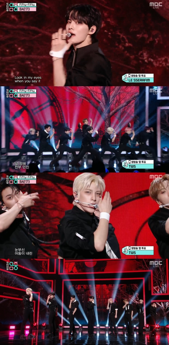 BAE173은 16일 오후 3시 15분부터 방송된 MBC '쇼! 음악중심'(이하 '음중')에 출연, 신곡 'Fifty-Fifty'(피프티 피프티) 무대를 선보였다.