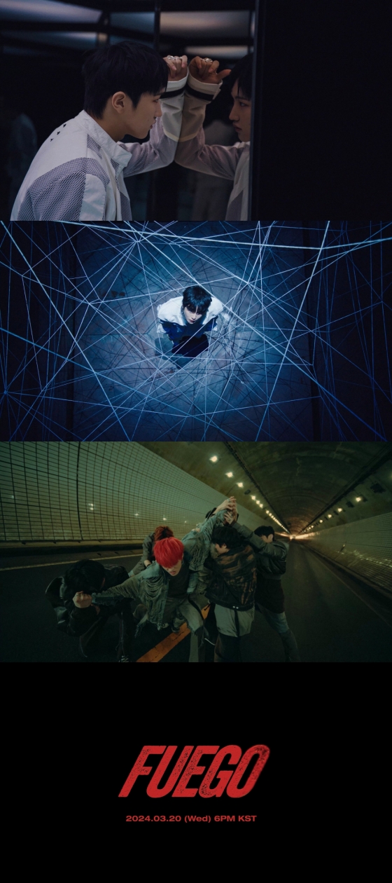 공개된 영상에는 끝이 보이지 않는 터널과 차가운 거울로 온통 둘러싸인 벽, 몸을 움직이지 못하게 옭아맨 줄 틈, 두 걸음을 채 걷지 못하는 좁은 방 등에 갇혀 혼란을 겪는 멤버들의 모습이 담겼다. 이어 강렬한 비트와 사이렌 소리로 귀를 자극하다 'FUEGO'라는 가사가 터져 나오자, 여섯 명의 멤버는 각자를 고통스럽게 하던 공간을 벗어나 한 데 모여 다음 스텝을 준비하는 듯 보인다.