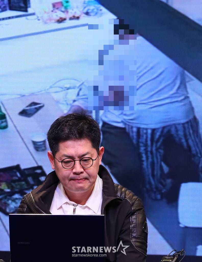 19일 오후 서울 강남구 논현동 성암아트홀에서 오메가엑스의 강제추행 사건에 대한 스파이어엔터 측 의혹을 해소하고자 하는 기자회견이 개최됐다. 스파이어엔터 황성우 대표와 김태우 변호사(법무법인 제하)가 참석했다.