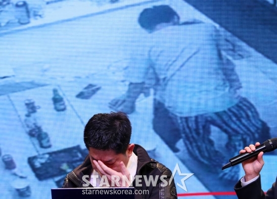 19일 오후 서울 강남구 논현동 성암아트홀에서 오메가엑스의 강제추행 사건에 대한 스파이어엔터 측 의혹을 해소하고자 하는 기자회견이 개최됐다. 스파이어엔터 황성우 대표와 김태우 변호사(법무법인 제하)가 참석했다.