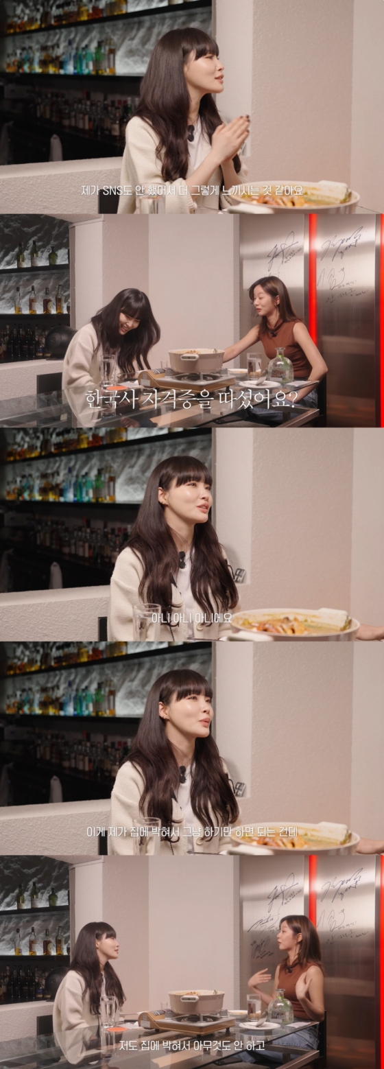 혜리는 "나도 오래 쉬었을 때가 있었다. 아무것도 안 했다. 청하 님은 한국사 자격증을 땄다더라"라고 하자, 청하는 "사실 집에 박혀서 했던 거 같다"라고 말문을 열었다.