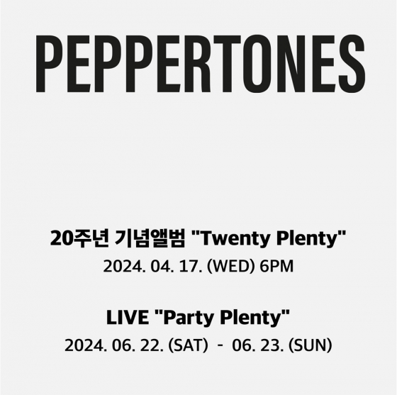 페퍼톤스의 20주년 기념 앨범 'Twenty Plenty'는 4월 17일 오후 6시 각종 음원 사이트를 통해 공개된다.