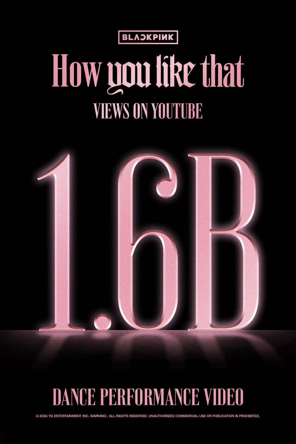 이로써 블랙핑크는 유튜브에서 16억뷰 이상 영상을 총 4편 보유하게 됐다. 앞서 '뚜두뚜두 (DDU-DU DDU-DU)' (21억뷰), 'Kill This Love' (19억뷰), '붐바야' (16억뷰)가 같은 조회수를 달성했었다.